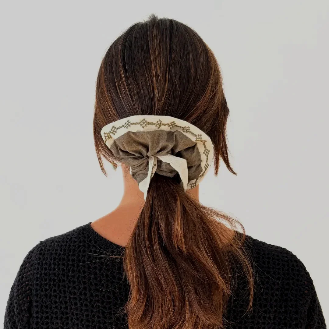 The Amal Headband features the "Baker's Wife" tatreez motif (Mart Al Farran in Arabic). The design takes 1.5 hours for our Darzah artisans to embroider. Your purchase will support 1/5 of a day's empowering work for a talented woman artisan in Palestine.